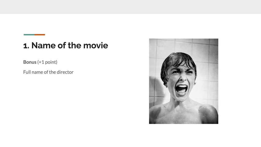 This a bundle of 5 ready-to-use quizzes (nicely designed slide decks) with more than 100 questions for your next pub quiz. It will test people's cinematography knowledge, both current and historical. Each deck contains 10 unique questions and each question has a bonus question. You will find correct answers in the middle of each deck and in case of a tie, there's a tie-breaker at the end.